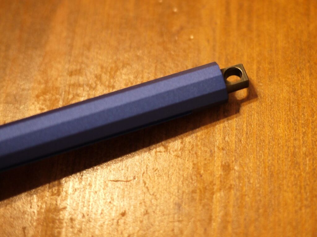 ペン本体の尻側には紐を通せるような穴があります。