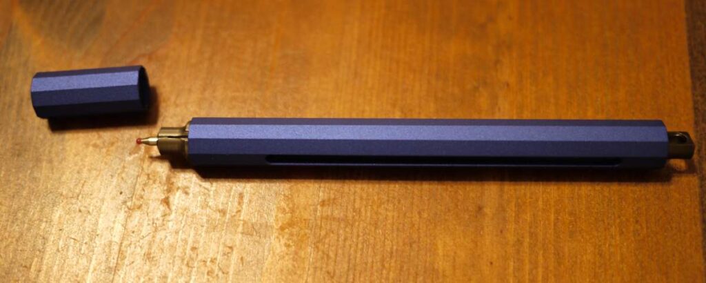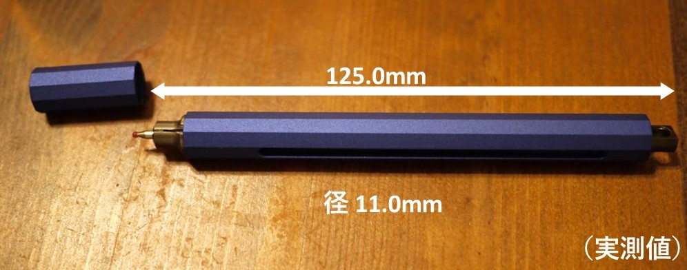 写真で見た通りのデザインで、本体はペン先から尻側まで一定の太さ。