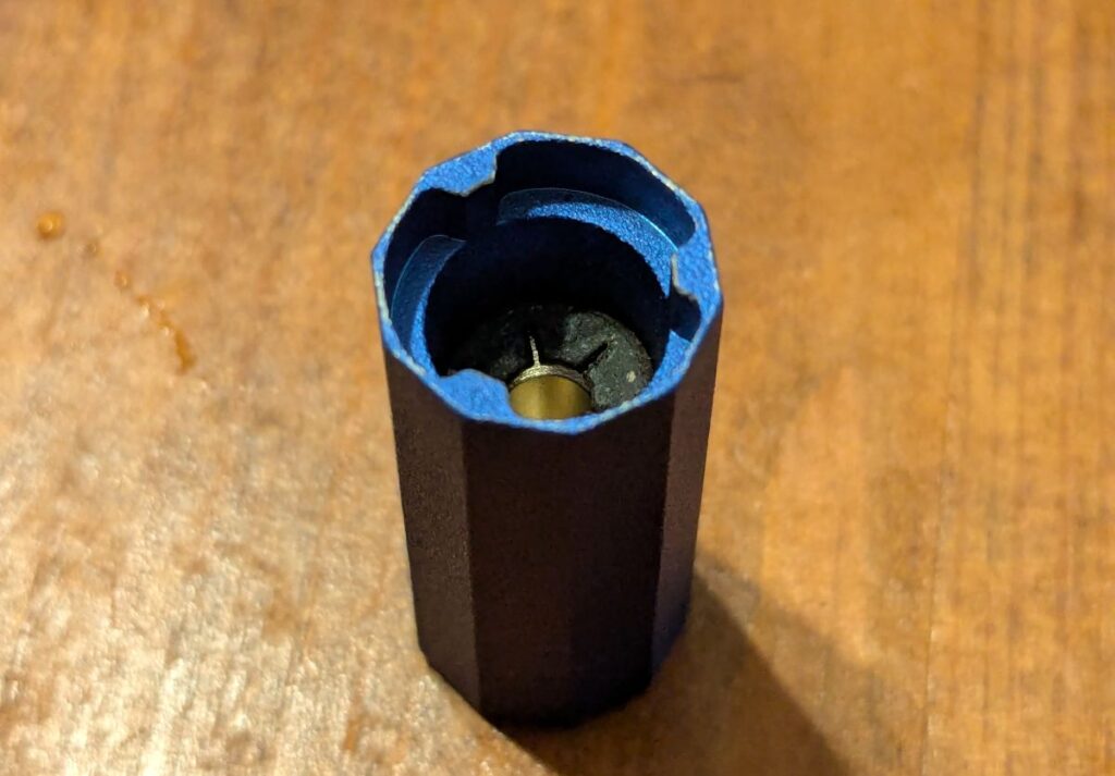 キャップ部分は、内側に円筒状の磁石が入っていて、その上からねじ式のフタをして磁石をキャップの中に封じ込めた状態になっています。