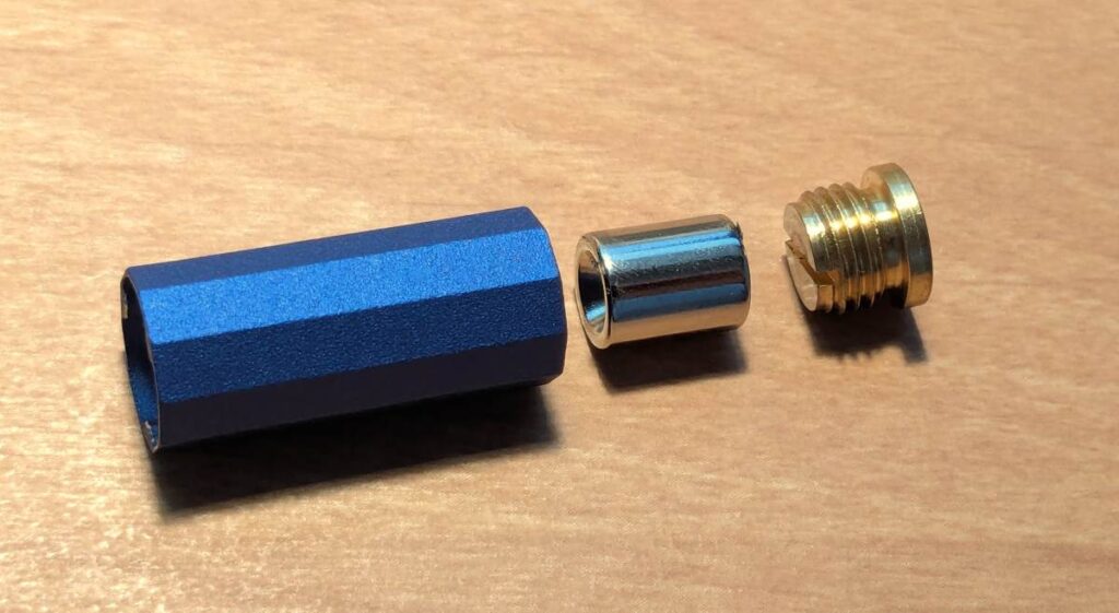 キャップ部分は外側のケース、フタ(ねじ式)、内側にある磁石の3つの部品(金属)でできています。