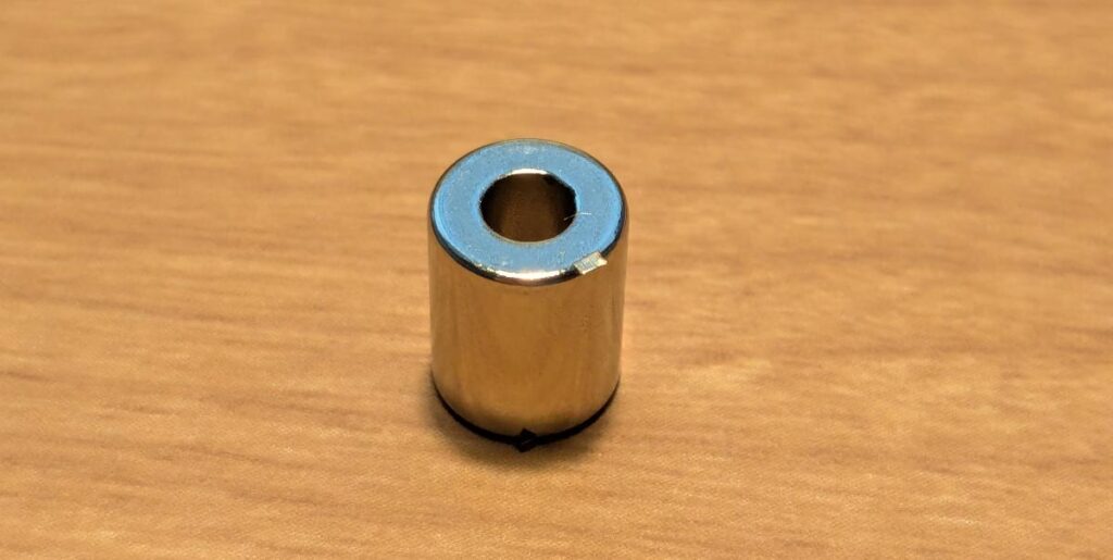 キャップの中に入っている強力な磁石。上面の縁に金属の小さなかけらがついたまま写真を撮ってしまっていました。