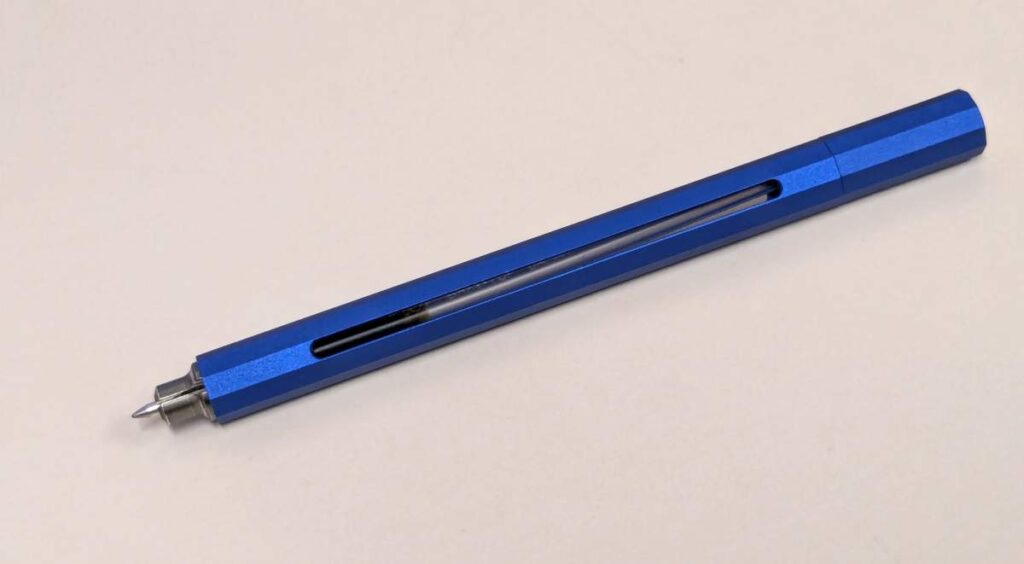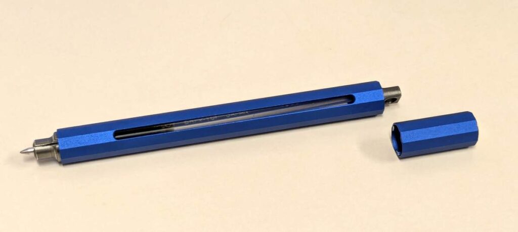 このペンが金属製であり、かつ軸が角ばっているため、他のペンと一緒にペンケースに入れると、他のペンが傷ついてしまいます。
